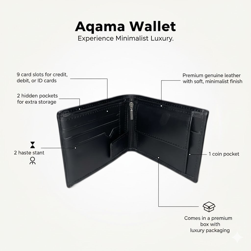Aqama is for the man who appreciates subtle elegance — the kind that doesn’t need a logo to stand out. Its minimalist design and luxury packaging make it an ideal gift for someone special or even for yourself. It’s stylish without being loud, practical without feeling basic — a wallet that blends craftsmanship, utility, and understated sophistication, all at a price that feels just right.